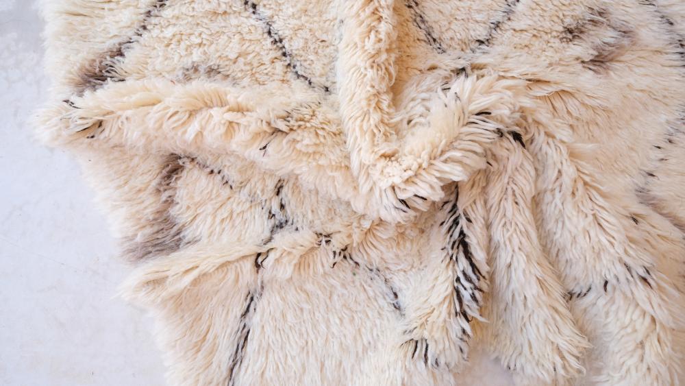 Handmade Moroccan White Rug - Vintage Berber Rug - Geometric Plush Wool Rug