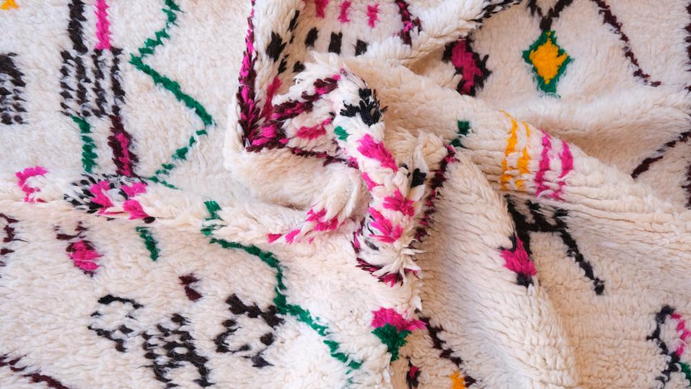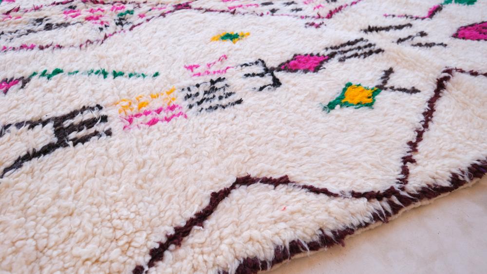 Hand-knotted by skilled artisans, this Azilal rug showcases the rich heritage of the Azilal tribe from Morocco. Known for their vibrant patterns and distinctive geometric designs, each piece tells a story of cultural tradition and craftsmanship.