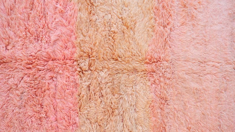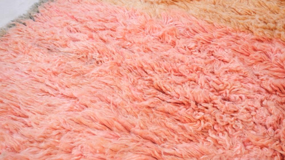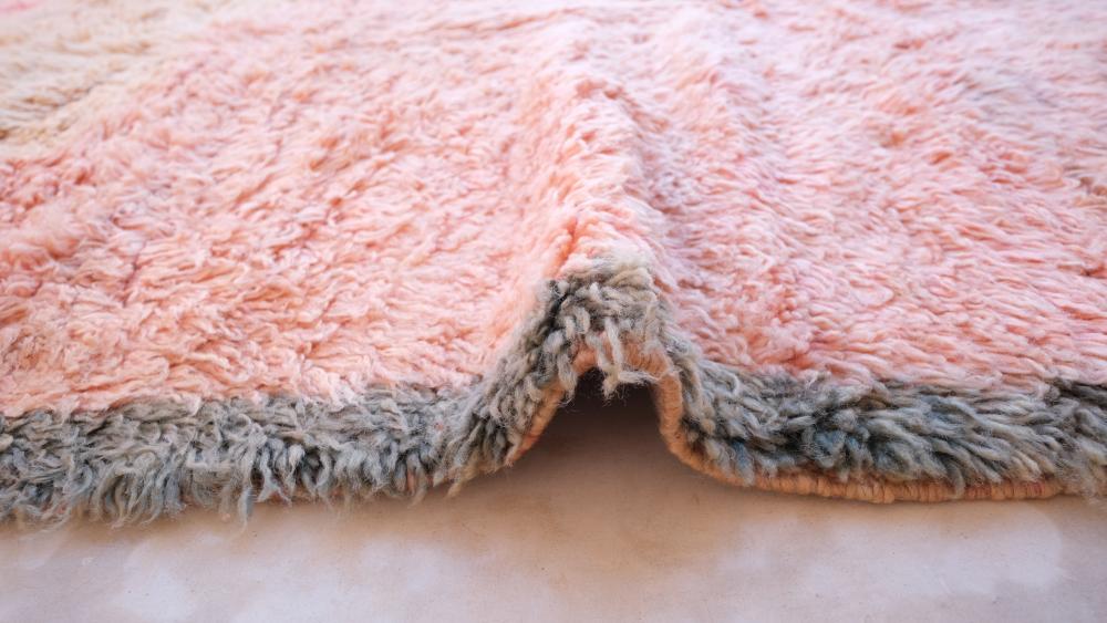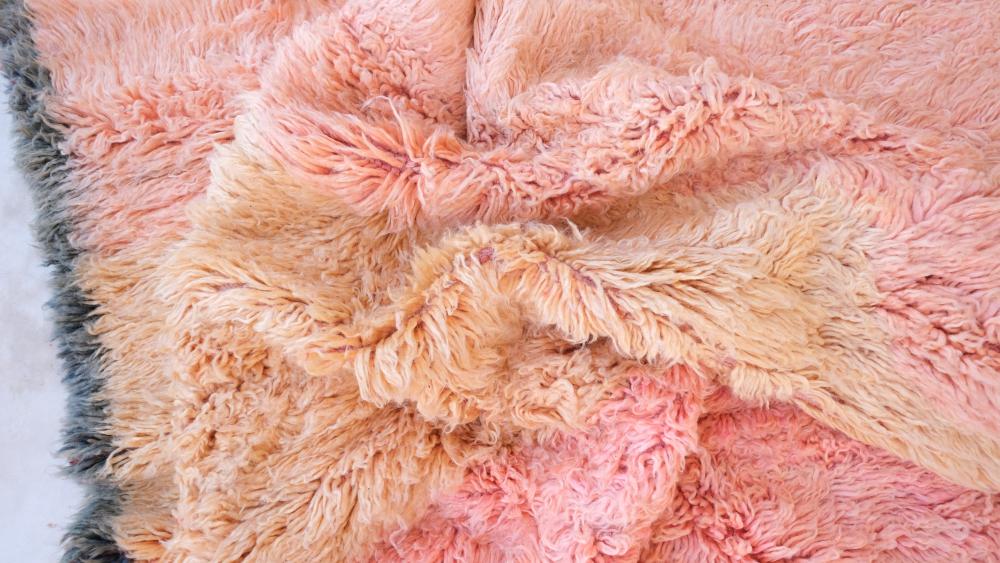 Pink Moroccan Shaggy Rug - Fluffy Wool Rug - Plush pile Rug - Vintage Handmade Solid Rug