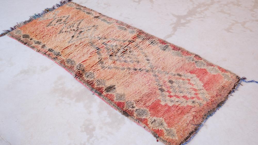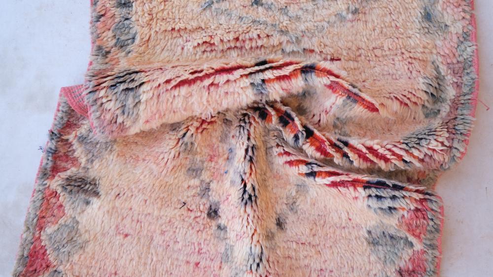 Moroccan Handmade Accent Rug - Peach Small Rug - Vintage Berber Rug