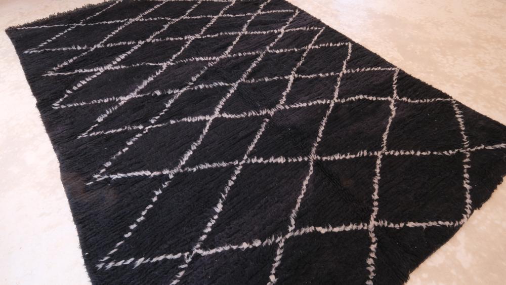 Black Moroccan Rug - Black and White Rug - Black Beni Ourain Rug