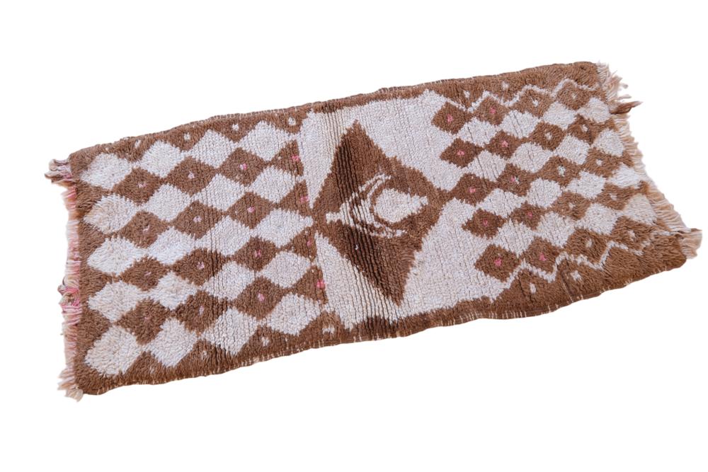 Handmade Moroccan Vintage Azilal Brown and Beige Rug - Berber Wool Rug - Traditional Moroccan Design - Unique Ethnic Home Decor - Antique Geometric Area Rug