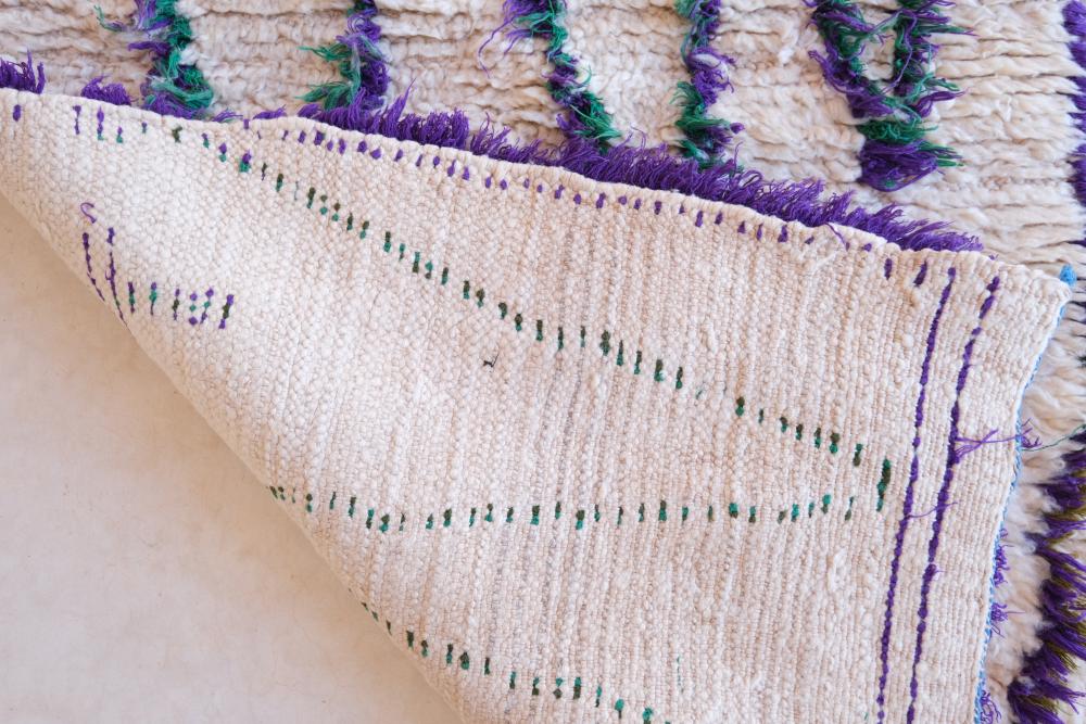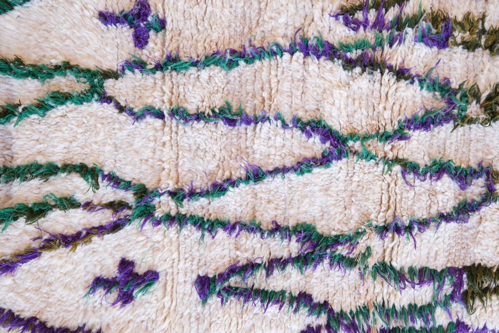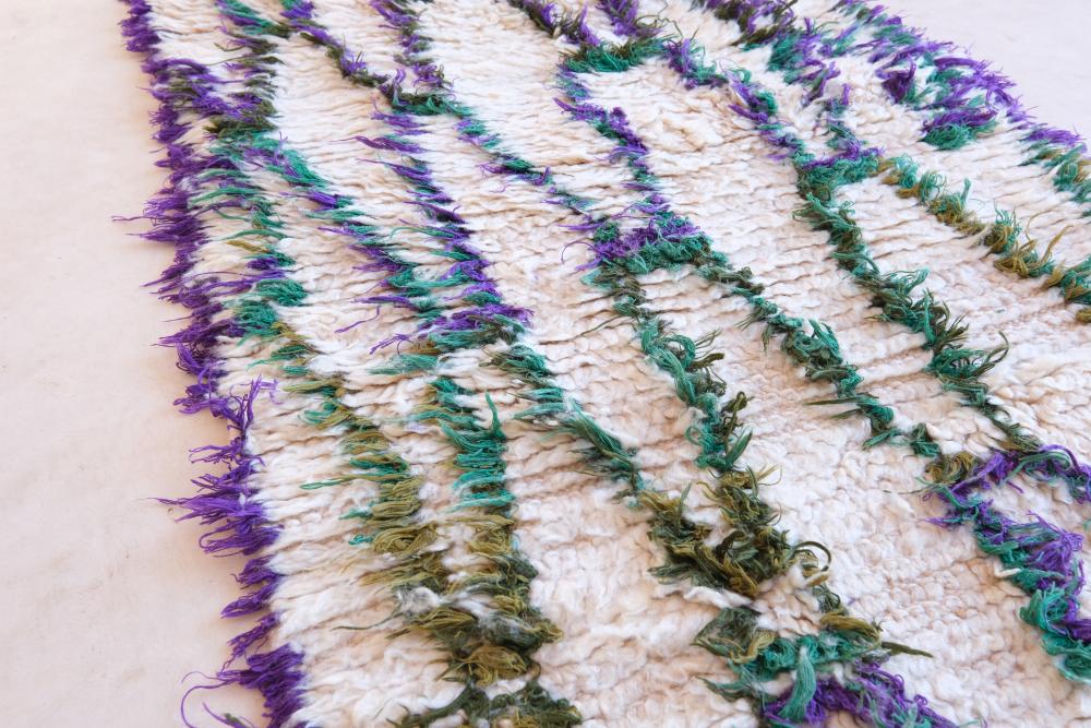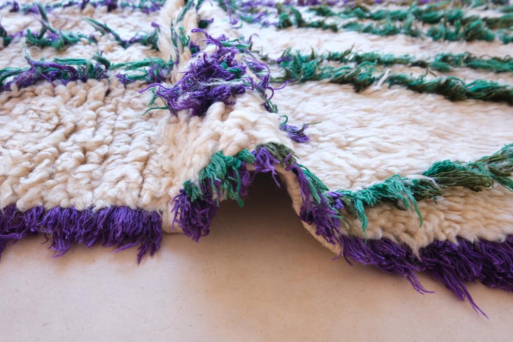 Handmade Moroccan Vintage Azilal Green and Purple Wool Rug - Handwoven Wool and Cotton - Tribal Berber Design - Berber Antique Moroccan Textile - Abstract Artistic Rug Accent