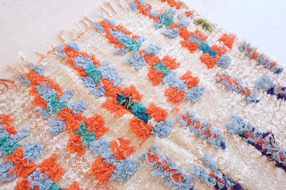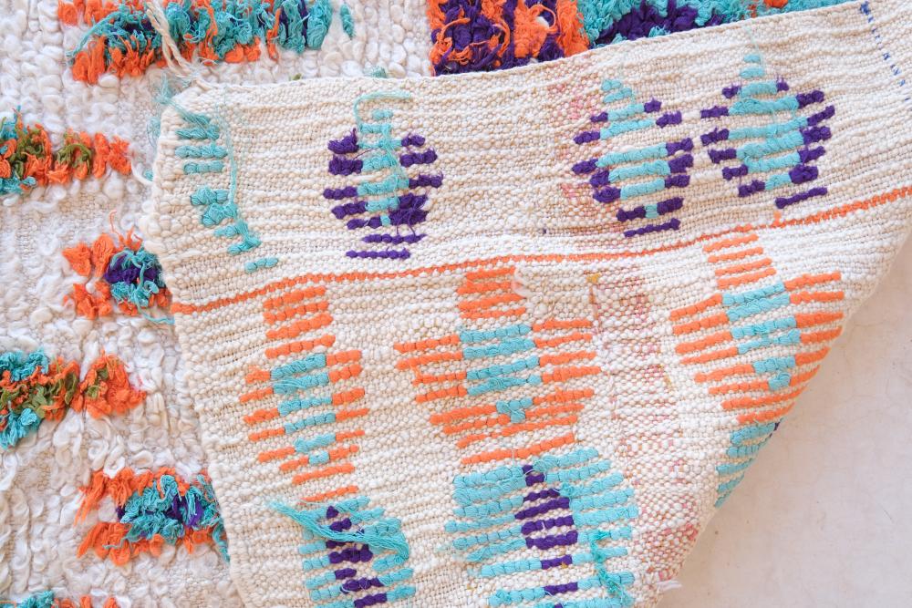Handmade Moroccan Vintage Marmoucha Colorful Wool Rug with Loops - Collectible Moroccan Rug - Unique Traditional Decor - Antique Moroccan Textile - Ethnic Artistic Area Rug