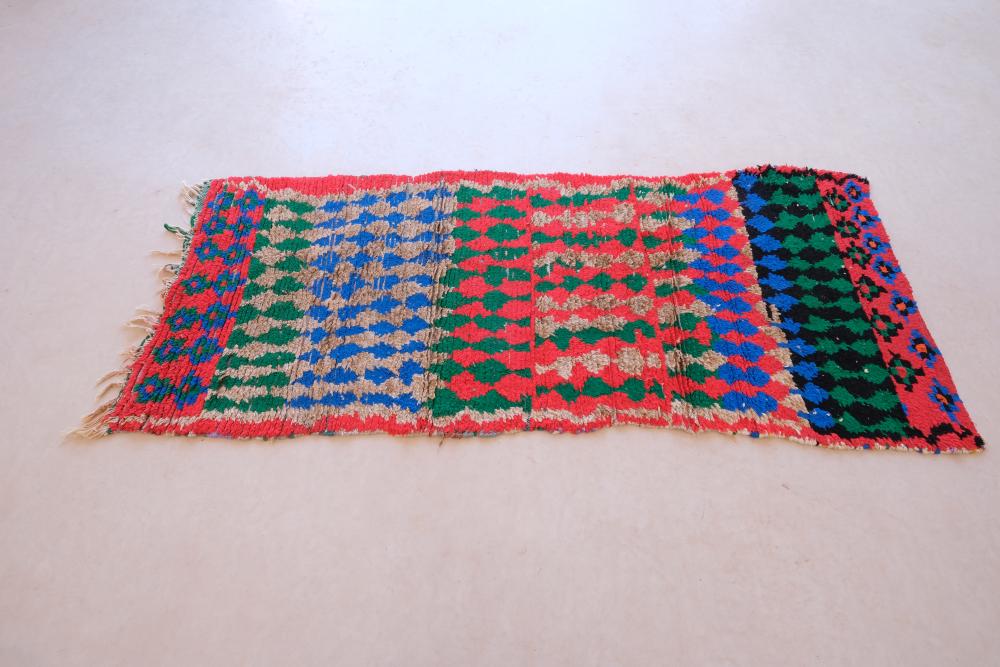 Handmade Moroccan Colorful Boujad Rug - Traditional Berber Geometric Patterns - Vintage Style Area Rug - Bohemian Patterned Rug
