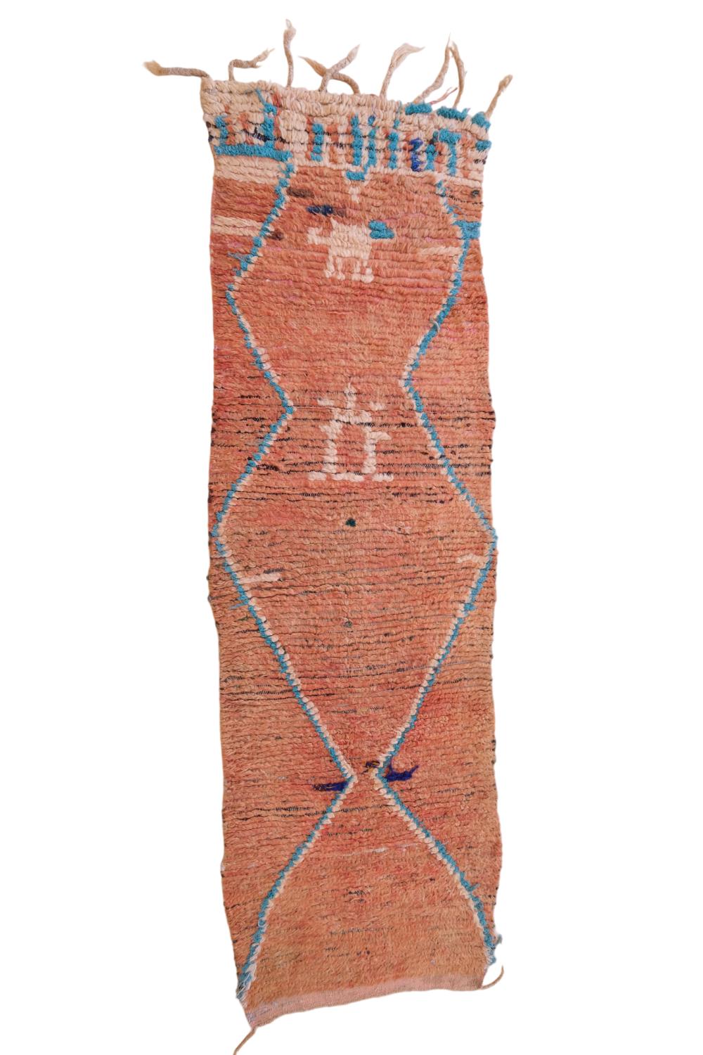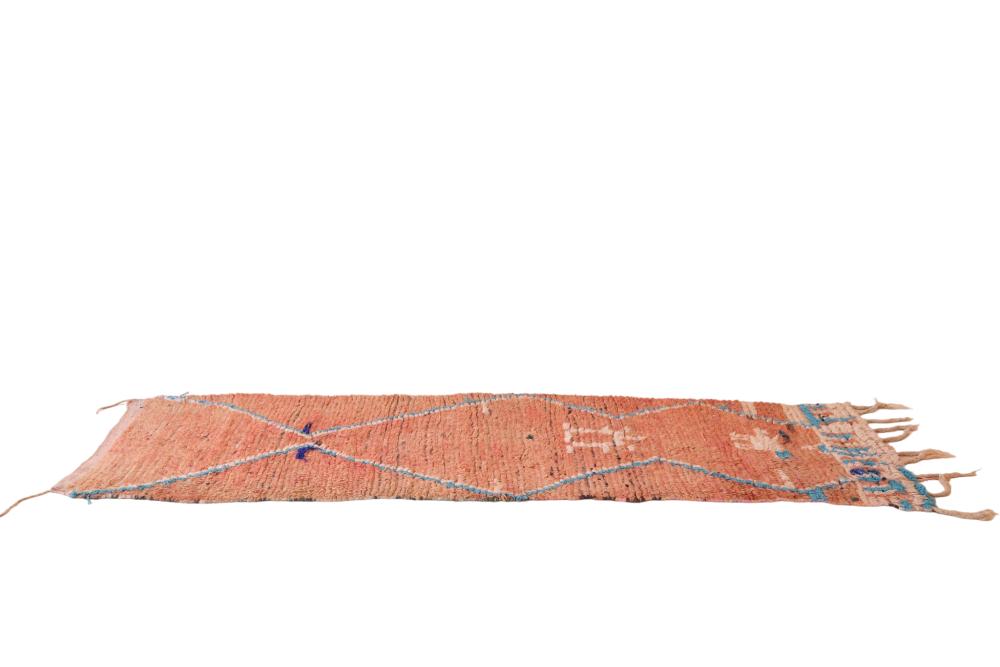 Moroccan Boujad Vintage Runner Rug - 9x3 feet Peach Wool Rug - Tribal Abstract Hallway Carpet