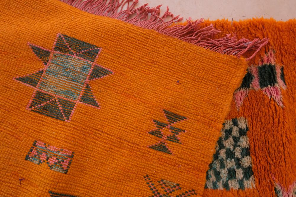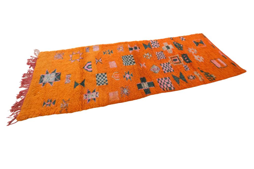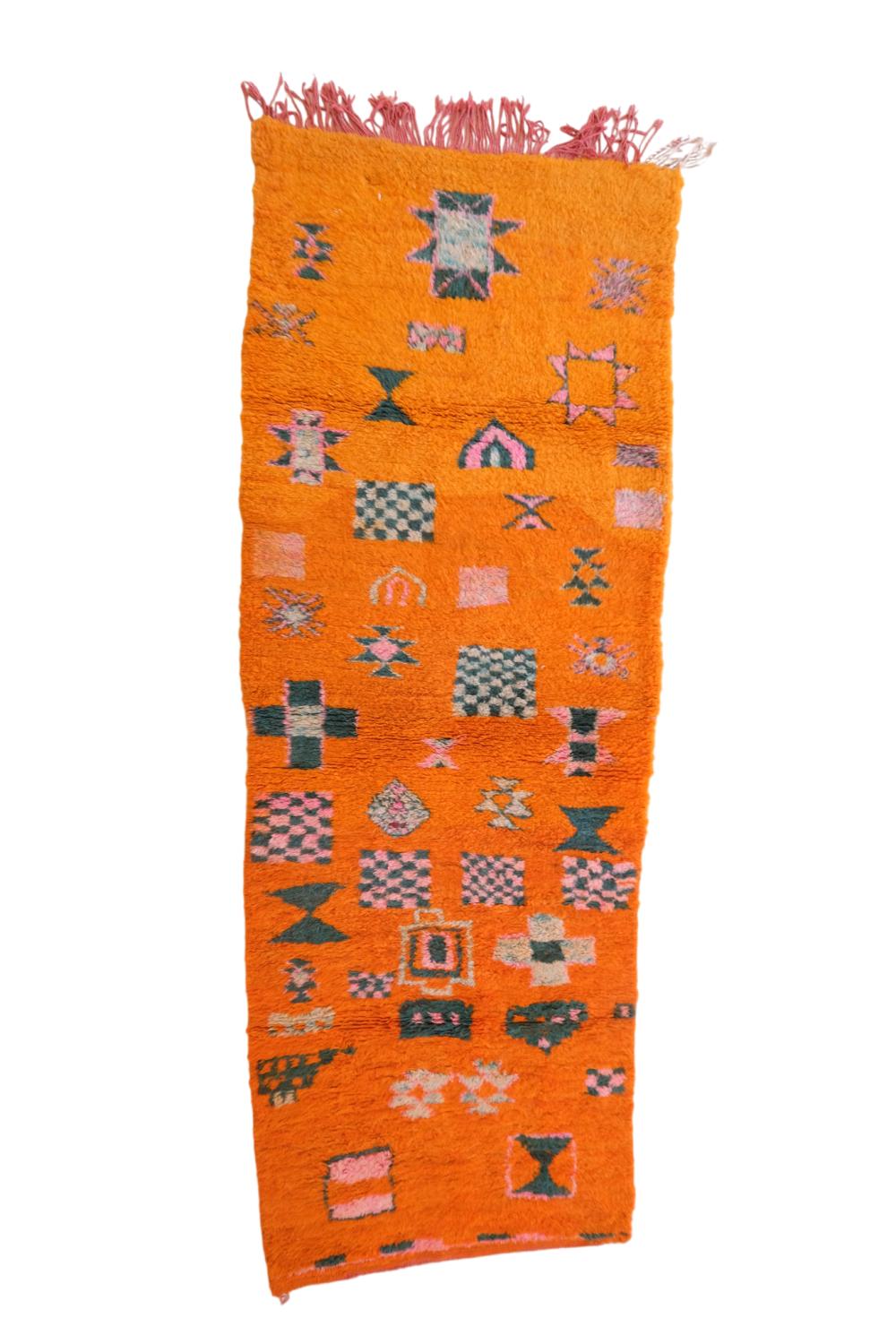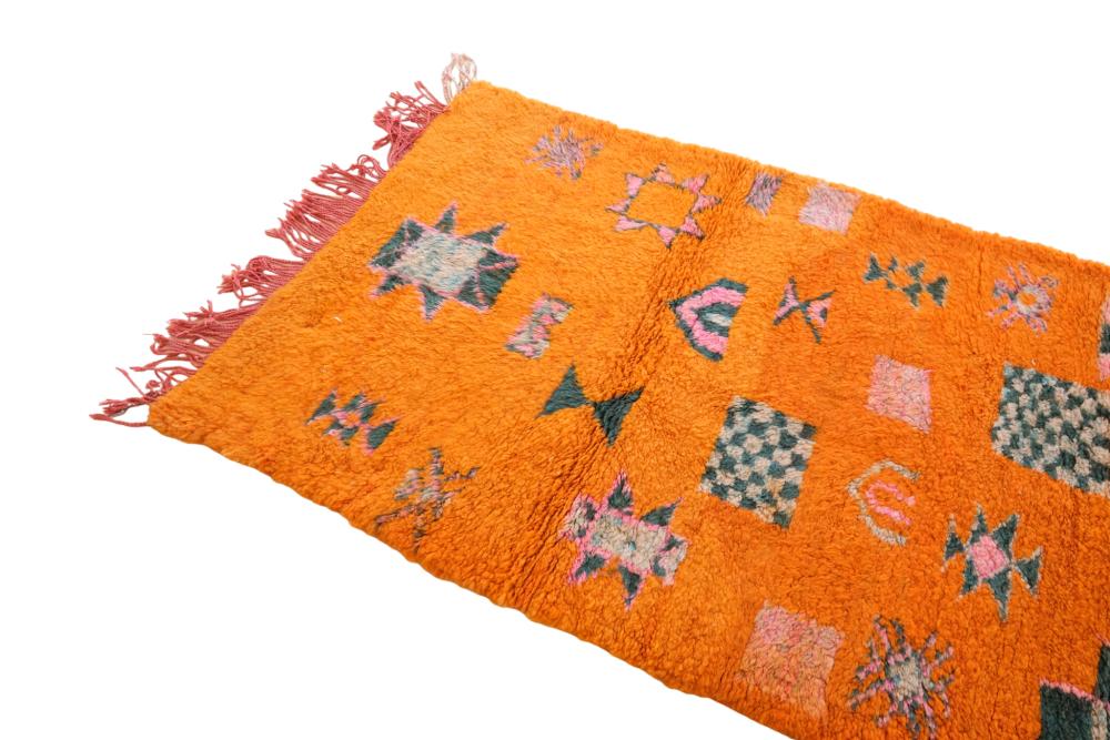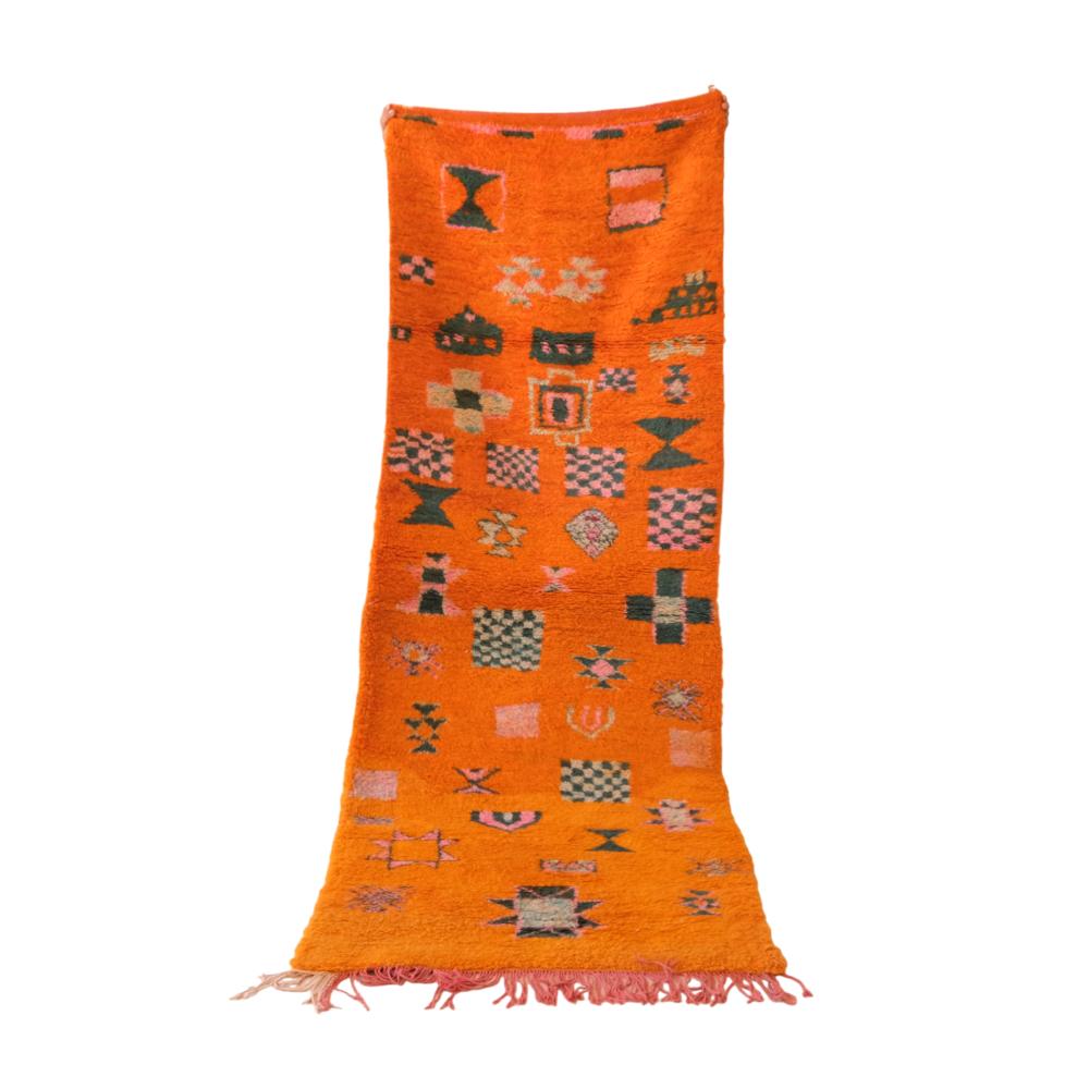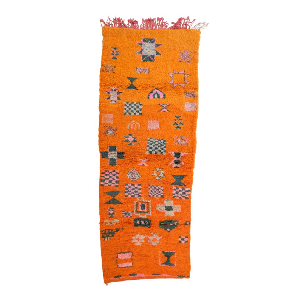 Moroccan Handmade Orange Tribal Runner - Boho Chic Runner Rug - Vintage Berber Hallway Rug