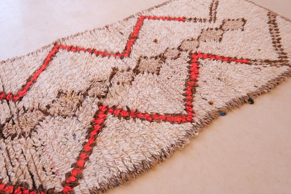 Handmade Moroccan Azilal Runner Rug - Cream Wool Area Runner Rug - 9x3 feet Tribal Syle Hallway Rug