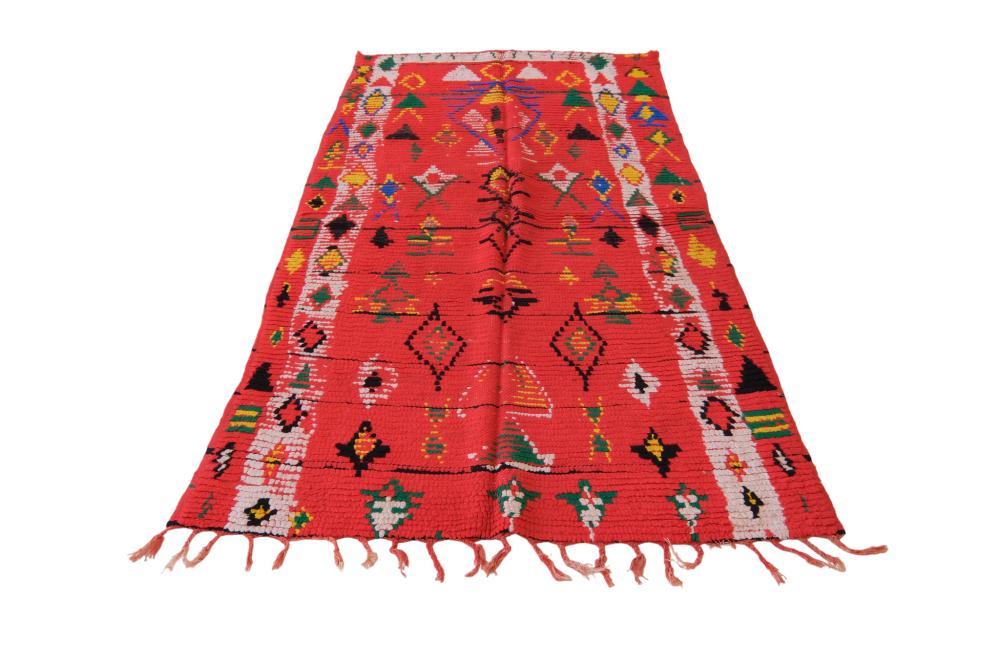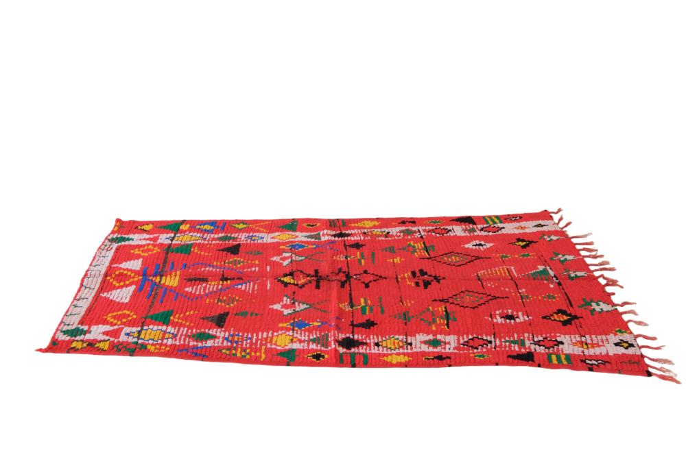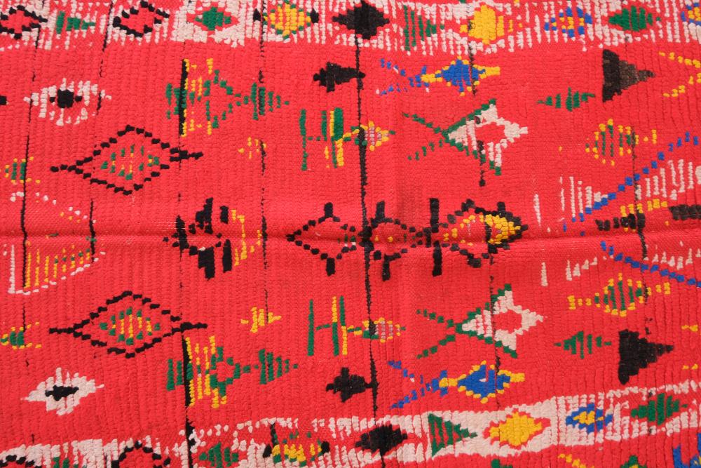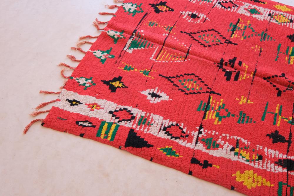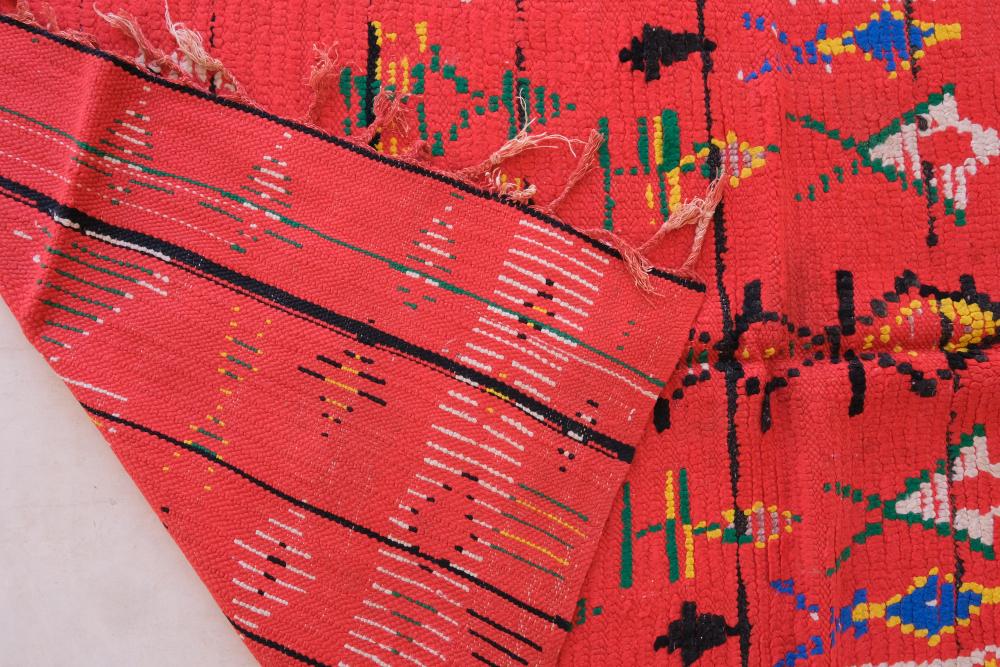 Moroccan Boujad Red Geometric Rug - Berber Wool and Cotton Rug - Boho Chic Area Rug