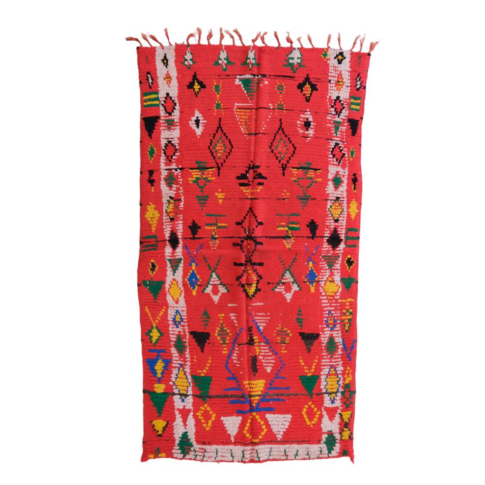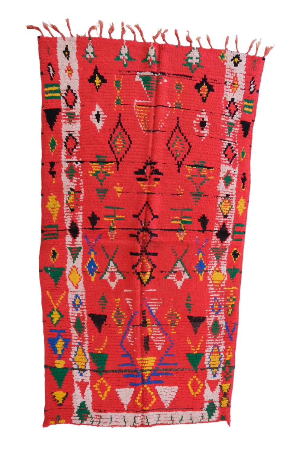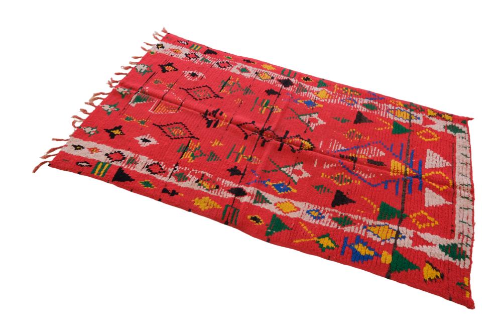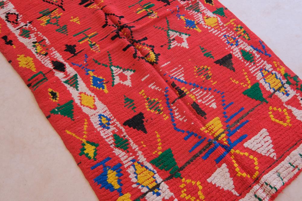 Moroccan Boujad Red Geometric Rug - Berber Wool and Cotton Rug - Boho Chic Area Rug