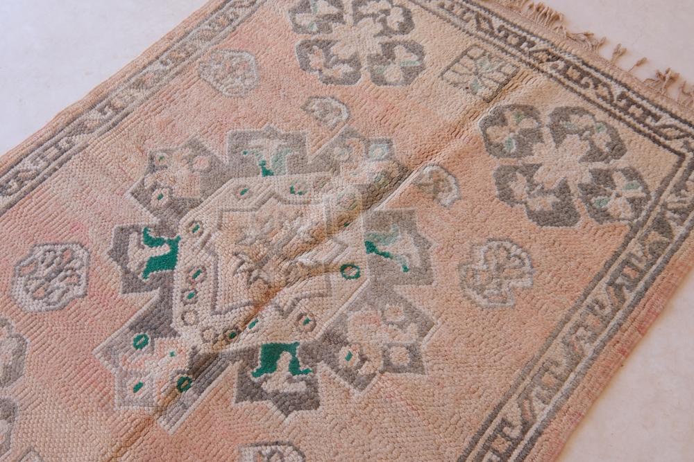 Handmade Moroccan Arabia Rug with Traditional Floral Patterns - Vintage Style Area Rug - Peach Soft Wool Rug