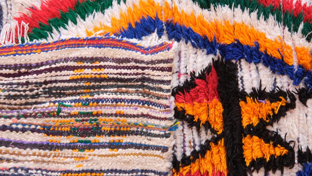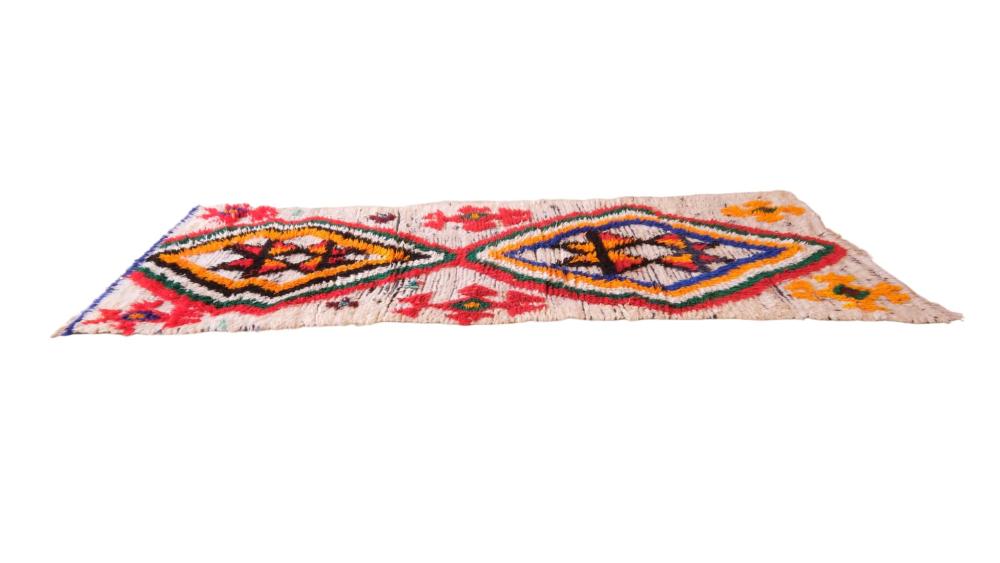 Handmade Moroccan Vintage Colorful Azilal Rug - Vintage Berber Wool and Cotton Carpet - Geometric Pattern - Bohemian Chic Decor - Unique Wool Textile