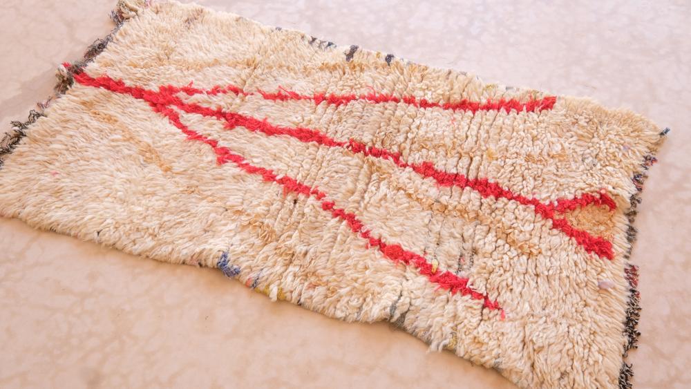 Handmade Moroccan Vintage Cream Azilal Rug - Traditional Berber Geometric Rug - Bohemian Home Decor - Small Unique Wool Carpet - Tribal Accent Piece