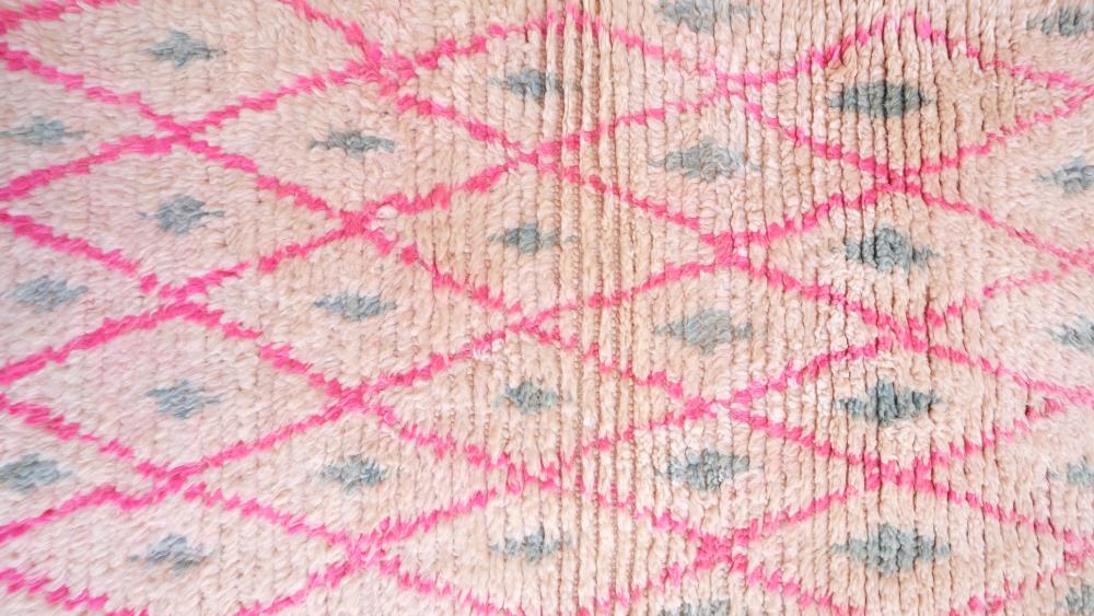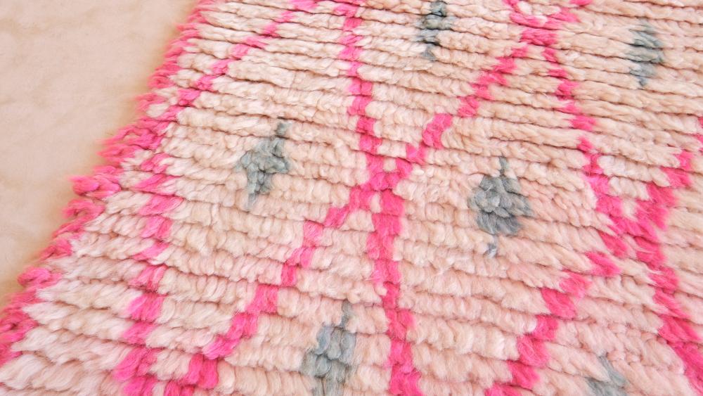Moroccan Handmade Azilal Vintage Wool Rug - Scandinavian Style Pink Area Rug - Nordic Home Decor, - Unique Vintage Home Accent - Authentic Moroccan Rug - 100% Natural Wool