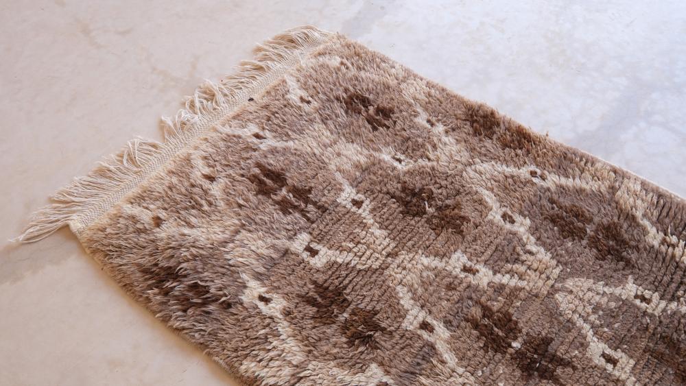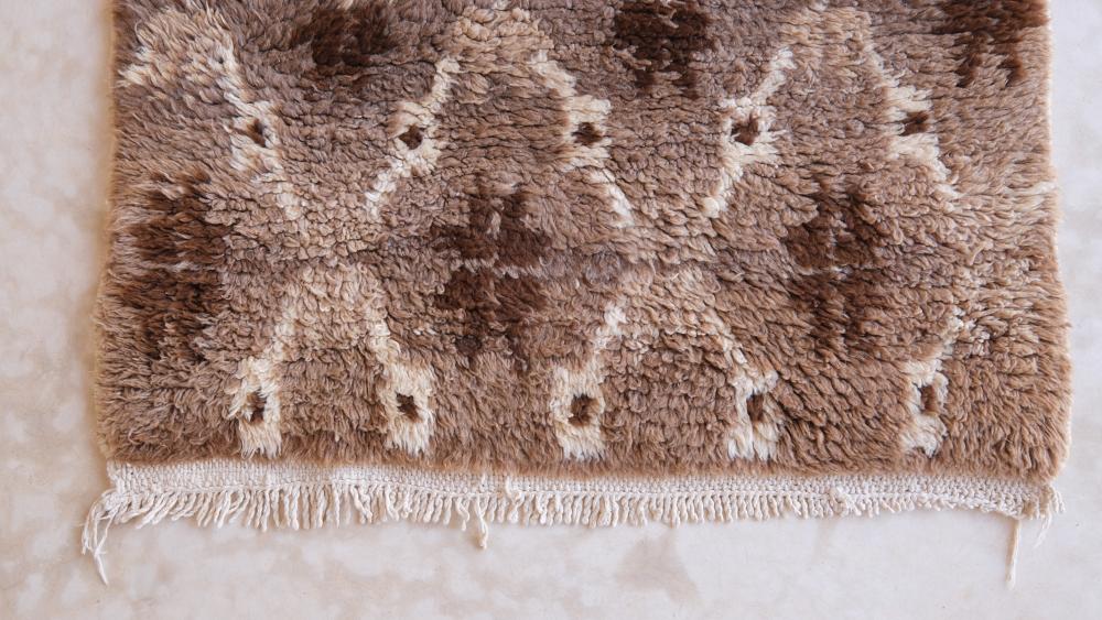 Moroccan Handmade Azilal Vintage Brown Wool Rug - Vintage Home Decor - Unique Vintage Interior Design - Authentic Moroccan Geometric Rug - 100% Natural Wool
