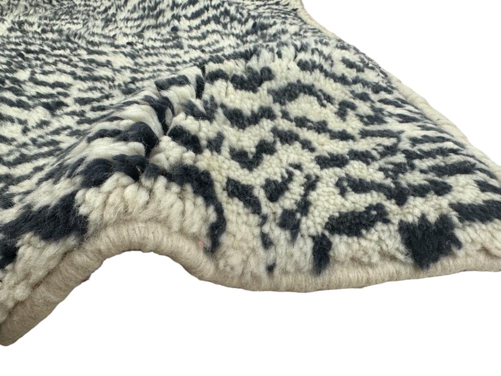 Handmade Beni M'Rirt Sample Rug - Modern Soft Wool Rug - Abstract White and Black Rug