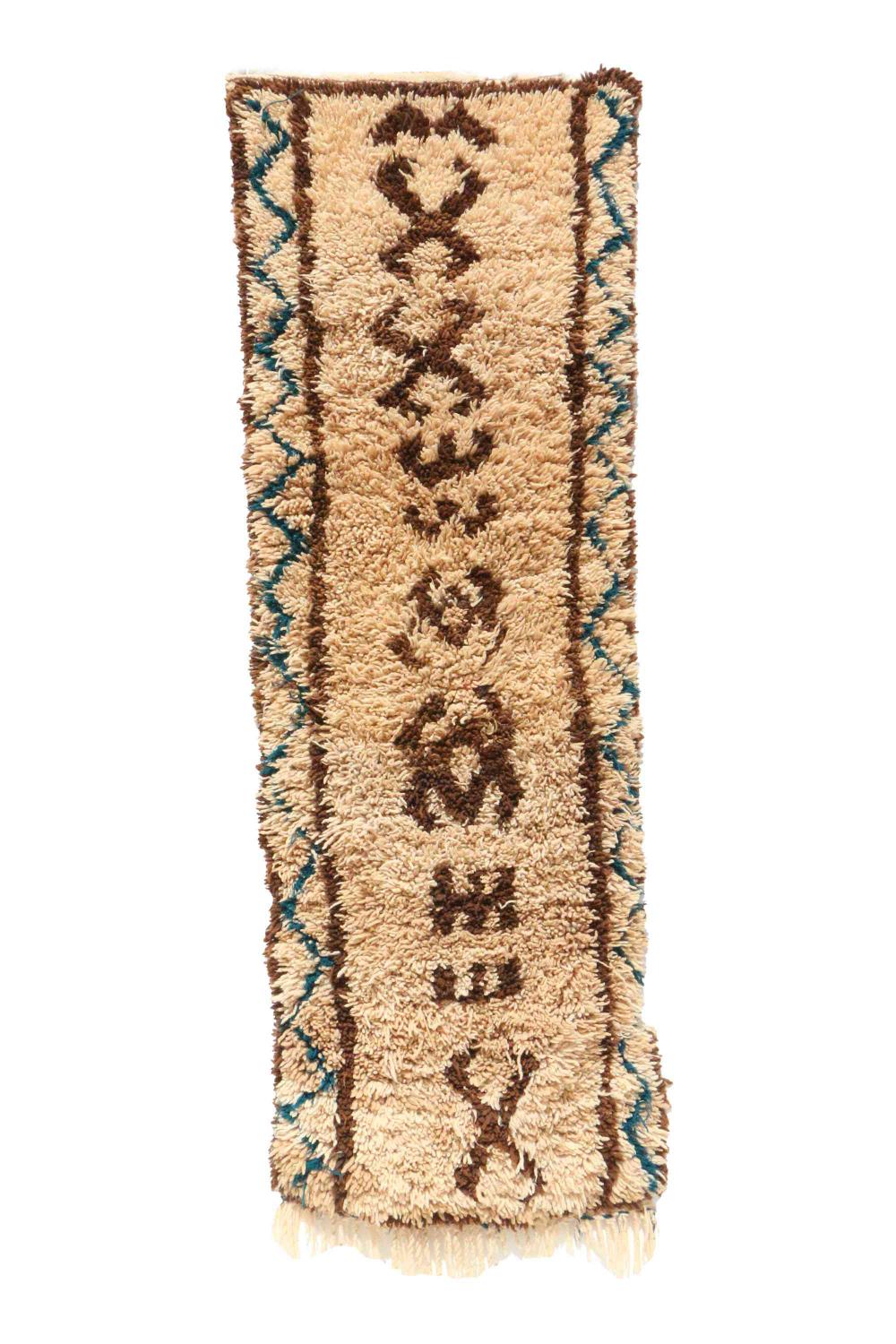 Azilal Berber Rug, Moroccan 2x7 feet Beige Floor Carpet