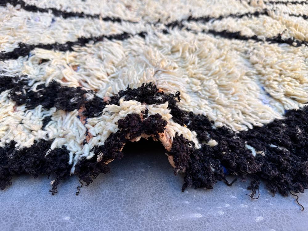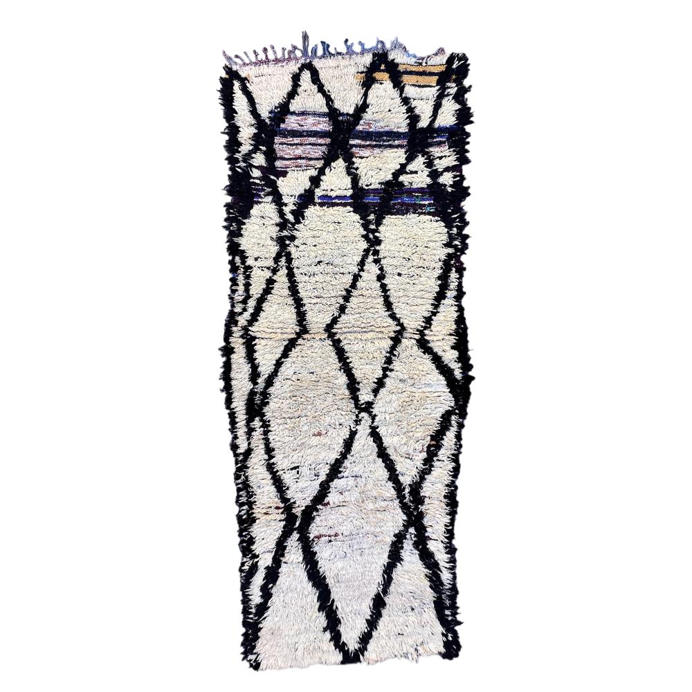 Handknotted 3x9 Small White and Black Scandinavian Moroccan Wool Rug