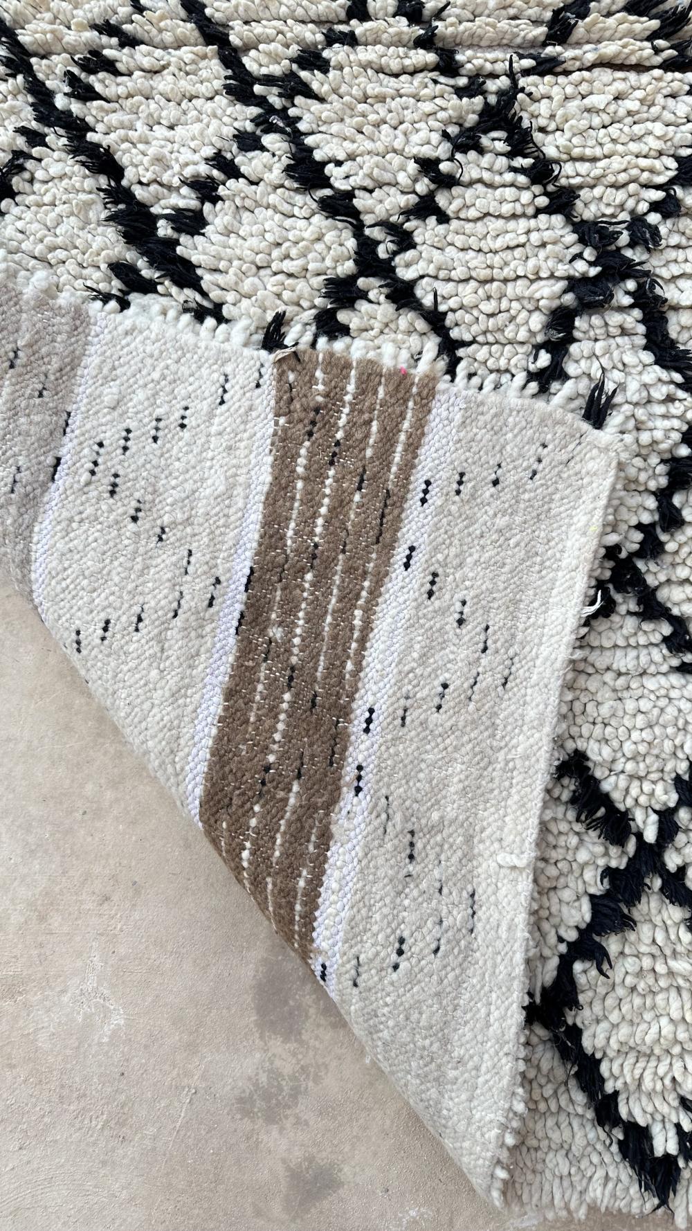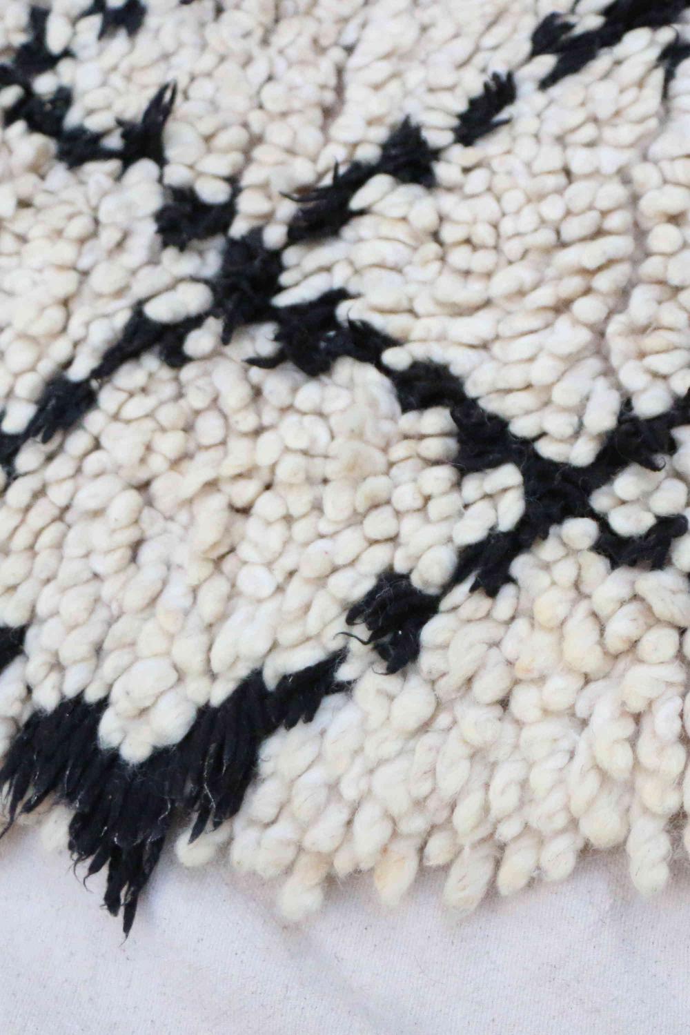 Handmade 3x9 Small White and Black Contemporary Berber Wool Rug