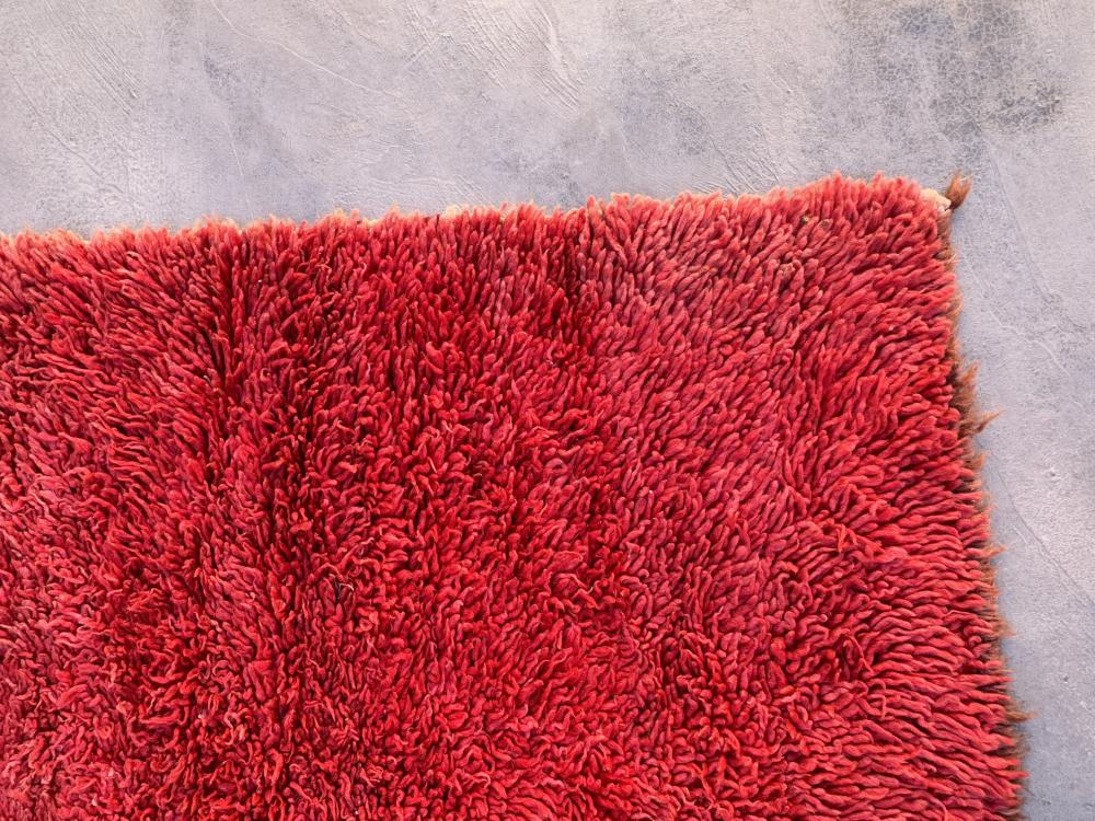 Handknotted 3x7 Small Red Mid-Century Modern Moroccan Wool Rug