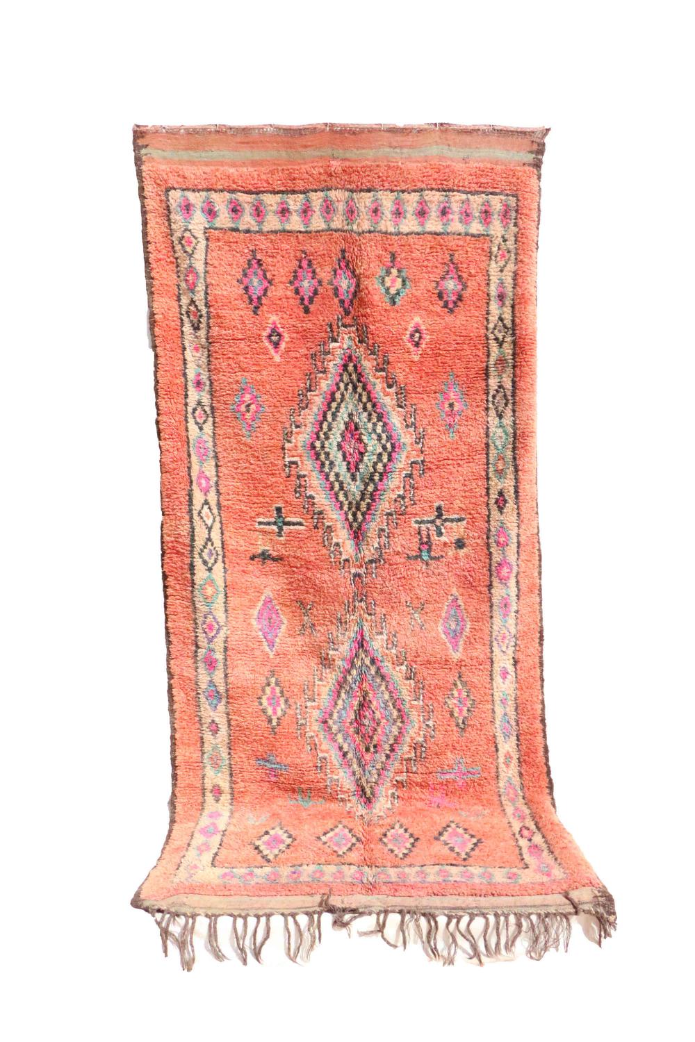 Boujad Moroccan Carpet, Berber 6x13 feet Pink - Peach Floor Carpet