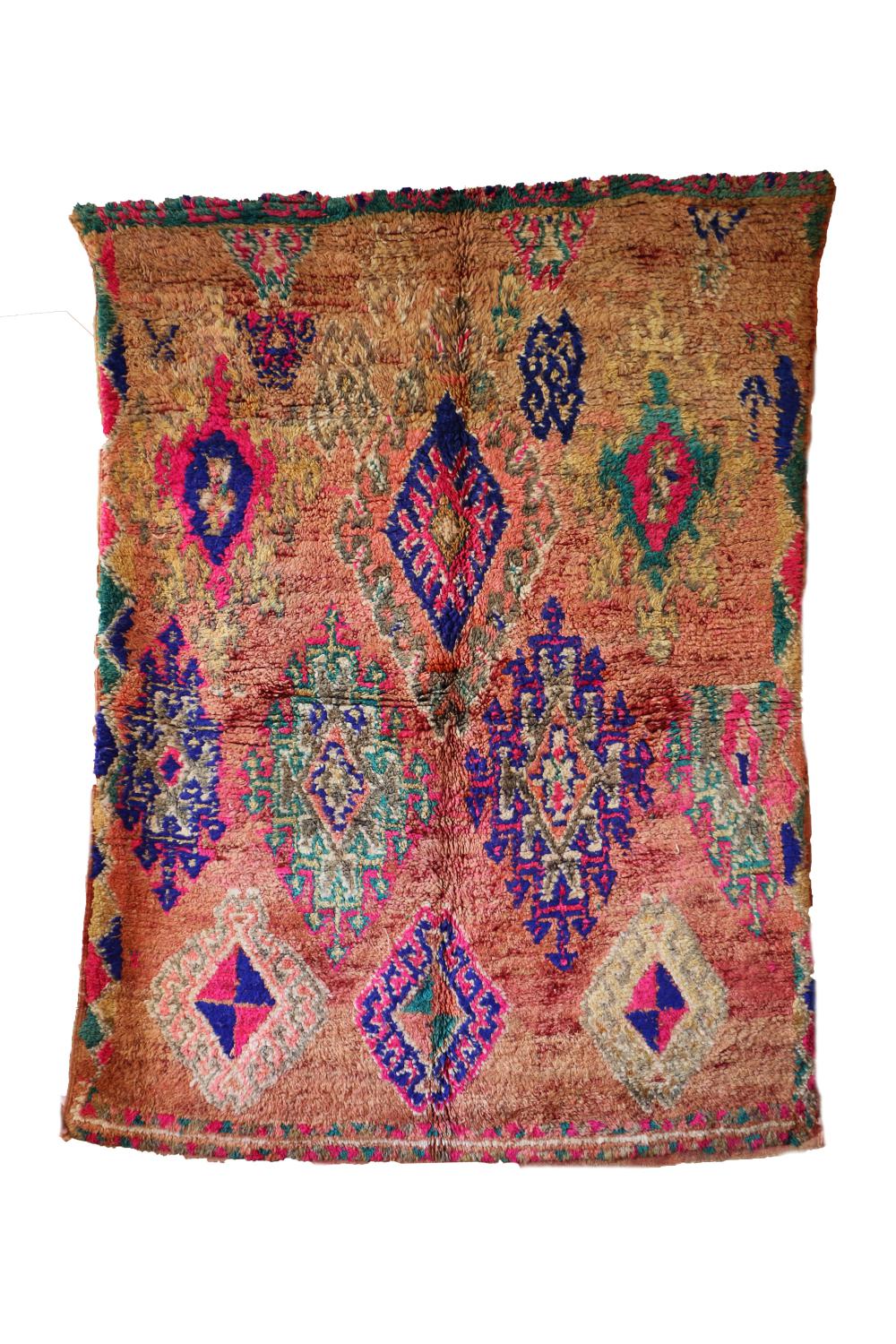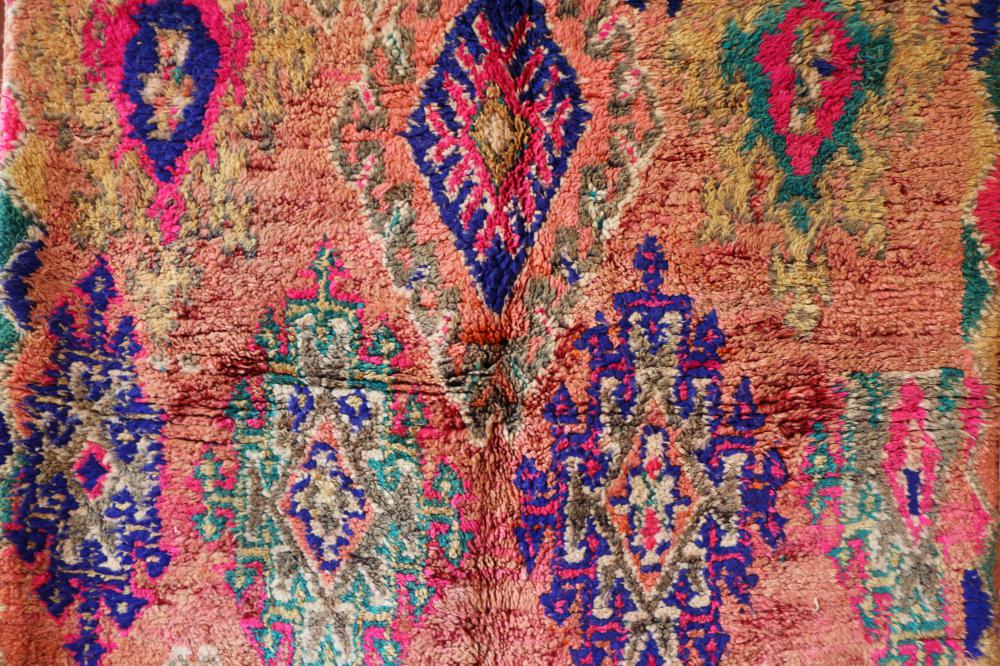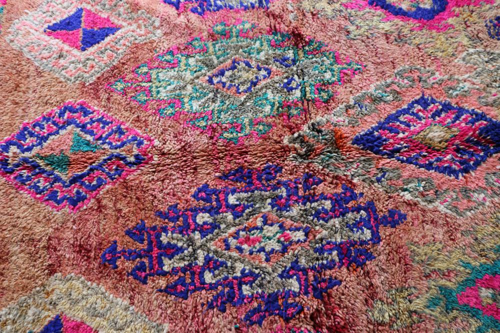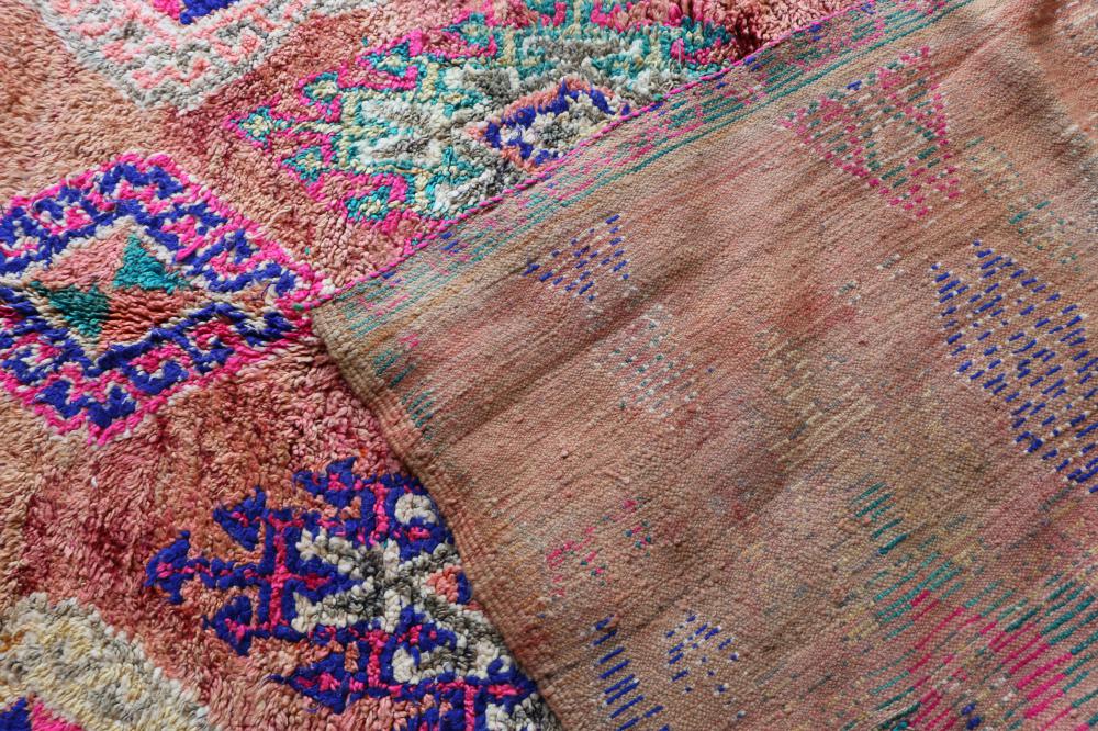 Boujad Moroccan Carpet, Berber 6x9 feet Pink - Peach Floor Carpet