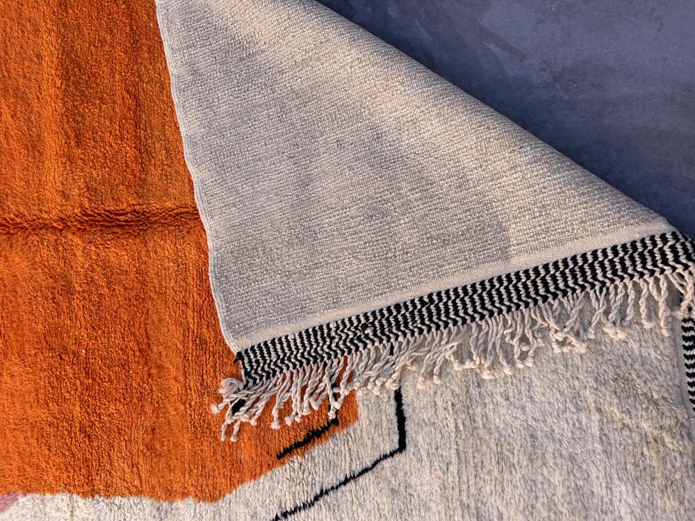 Handmade 5x9 White and Orange Contemporary Moroccan Wool Rug