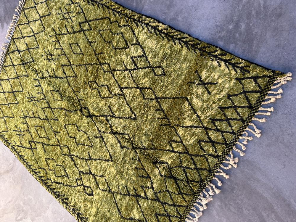 Handknotted 6x8 Green and Black Contemporary Moroccan Wool Carpet
